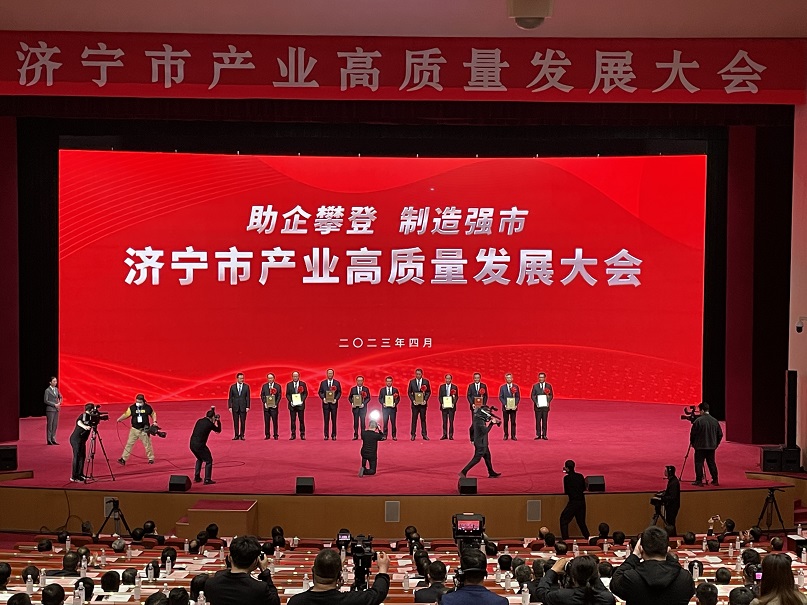 4月28日,濟(jì)寧市產(chǎn)業(yè)高質(zhì)量發(fā)展大會(huì)在圣都會(huì)議中心隆重召開,對(duì)2022年度全市產(chǎn)業(yè)高質(zhì)量發(fā)展先進(jìn)集體和先進(jìn)個(gè)人進(jìn)行了表彰。